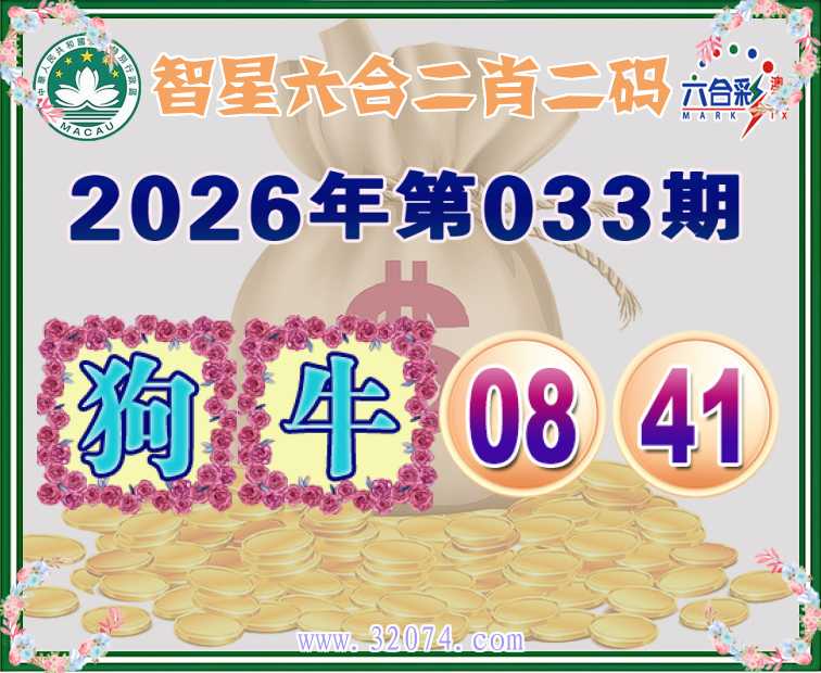033期:【智星六合】 🧩二肖二码🧩【狗】【08.41】开:牛41准上榜高手